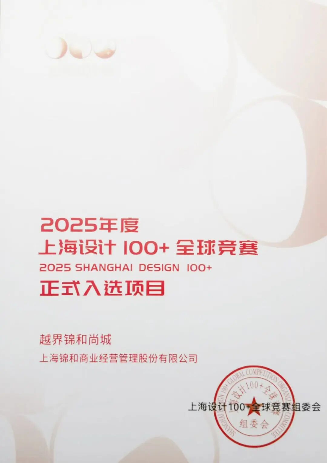 锦和商管(603682)旗下标杆项目——越界锦和尚城,凭借其卓越的城市更新设计理念与成功的商业运营实践,成功入选2025年度“上海设计100+”全球竞赛正式项目。这不仅是对项目设计价值的至高肯定,更是对锦和商管在城市更新领域深耕不辍、引领行业发展的实力印证。